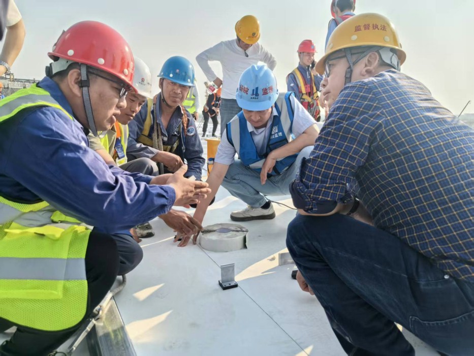 邗江区质监站主监人江新宇和吴庭军参加法院项目幕墙隐蔽验收专题会
