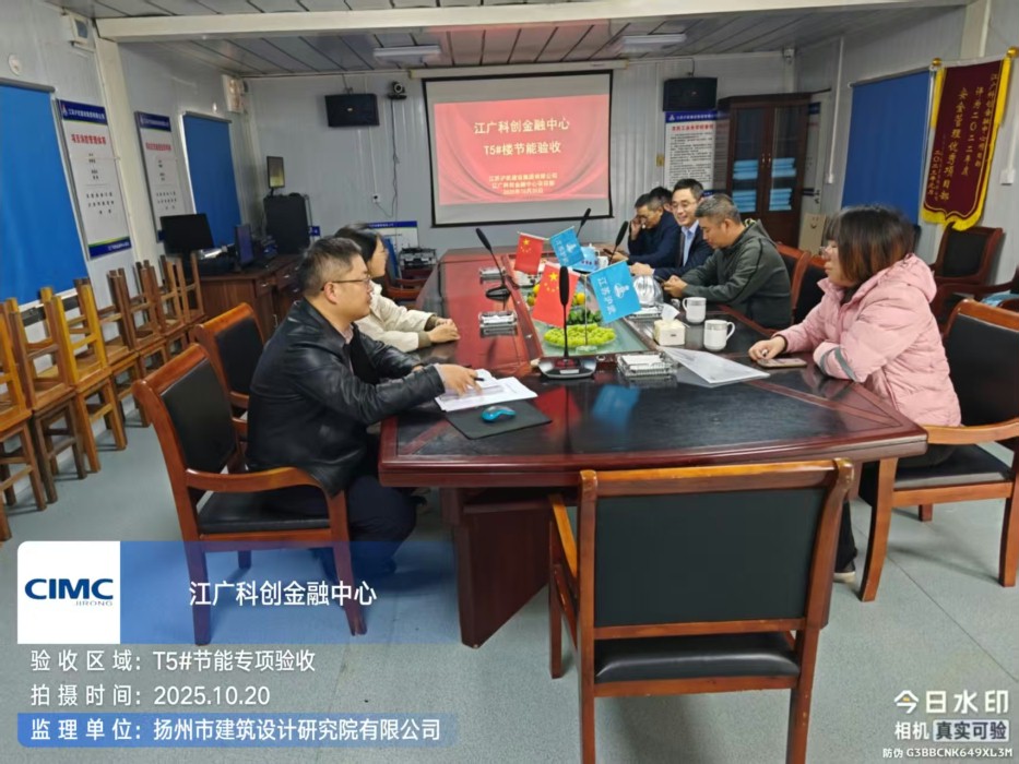 监理部总监杭平贵组织建设单位代表及施工单位对江广科创金融中心项目的T5#楼进行了建筑节能分部工程验收