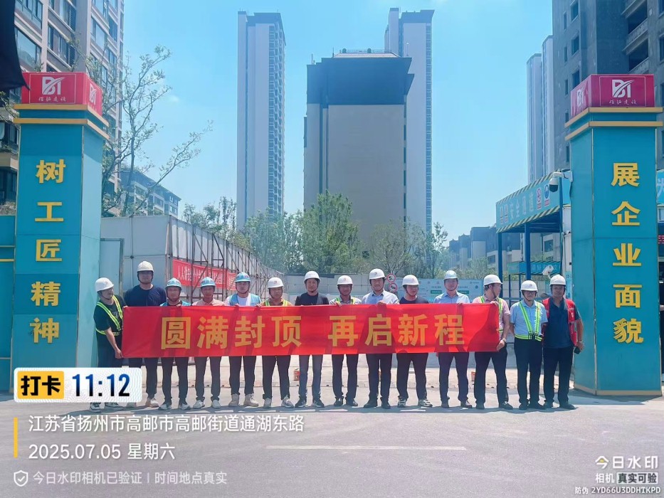 由我单位承担监理的云台嘉园三期12#楼、13#楼工程,于2025年7月11日上午11:08分顺利封顶。