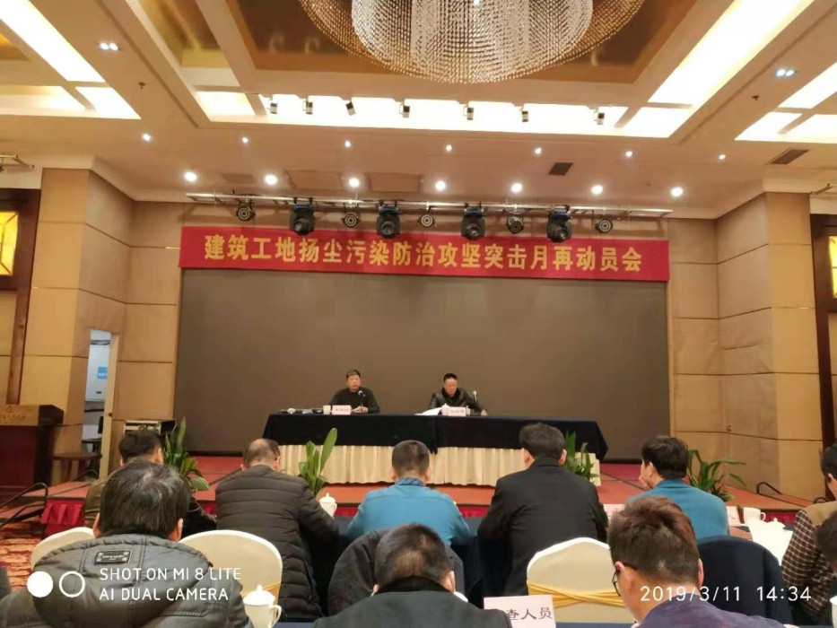 为响应市政府展开的大气污染防治攻坚突击月行动,市建设局2019年3月11日下午2点15在中集.格兰云天大酒店(扬子江北路368号二楼会议室)召开扬尘防治紧急会议,市直在建项目建设单位负责人,项目总监,项目经理,安全站,城建监察等相关人员参加。