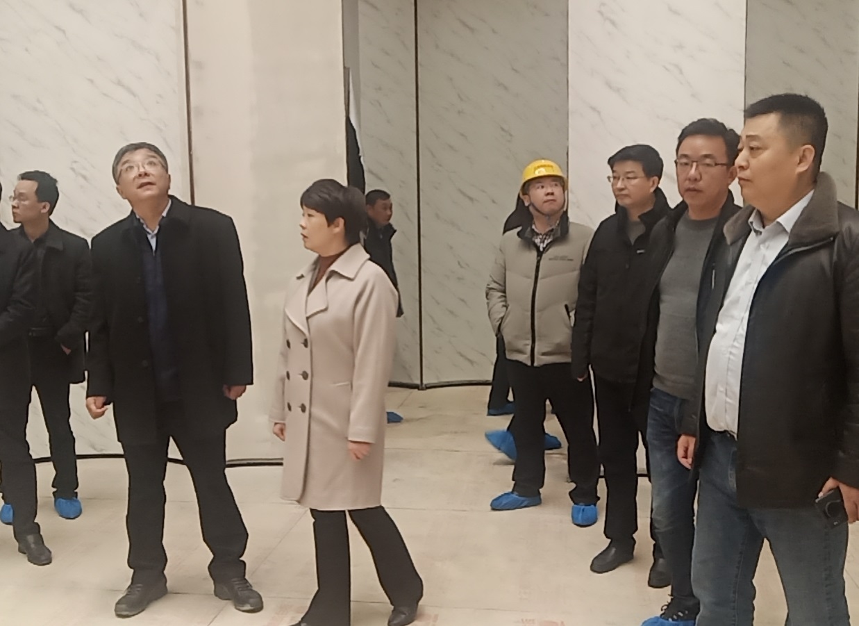 场馆筹备情况汇报。余珽,尤在晶;佘俊臣、吴军、宋振邦;运河文投公司、市城管局主要负责人等参加