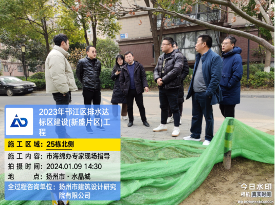 2024年1月9日,邗江区市政建设处常主任与市海绵办专家,莅临邗江区排水达标区建设(新盛片区)工程现场,指导海绵城市系统建设工作。