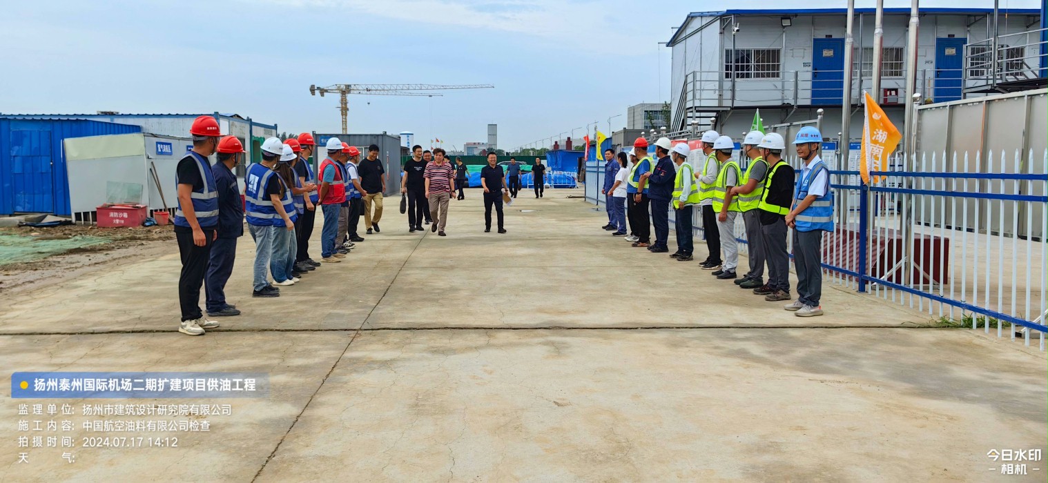 2024年7月17日下午,中国航空油料有限责任公司北京总部领导对扬州泰州国际机场二期扩建项目供油工程进行参观检查,对现场资料提出指导性意见,要求高标准高质量建设好本项目。