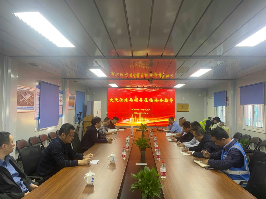 10月4日,市住建局张家来局长一行现场检查扬泰机场二期扩建工程T2航站楼项目的安全施工、质量管理、扬尘管控情况。