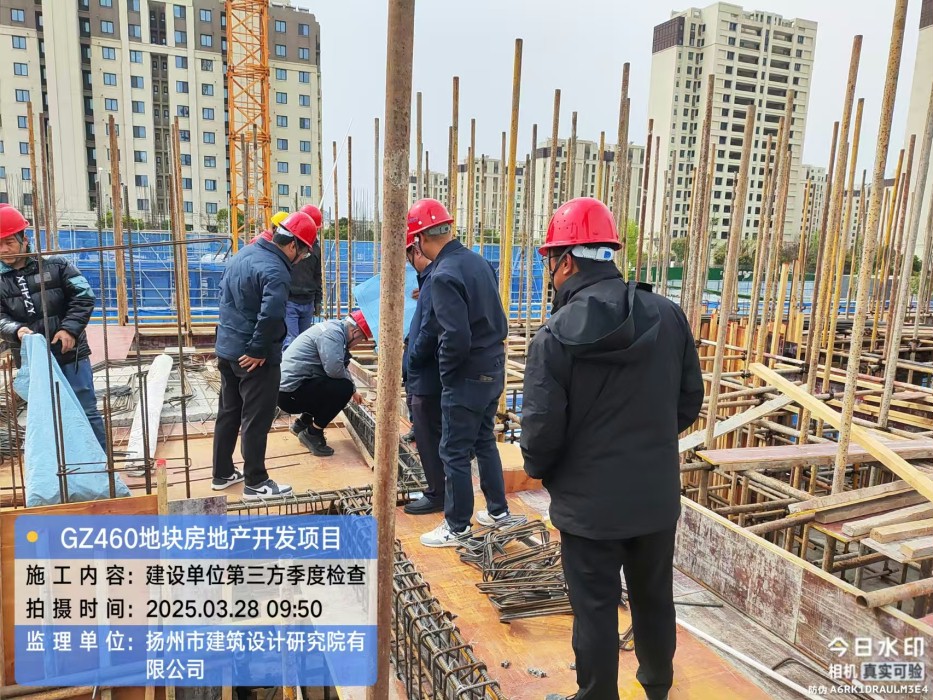 2025年3月28日,华建地产公司委托深圳瑞捷公司对GZ460项目开展全面巡检,检查组上午对现场质量、安全、材料和管理行为进行检查,下午对各方资料和员工面对面考核,经过一天检查,检查组认为GZ460各方基本情况较好,混凝土成形质量好、外墙防水节点做法可推广学习,对于模板支撑、记录仪影像资料、现场临时用电要进一步加强提升。
