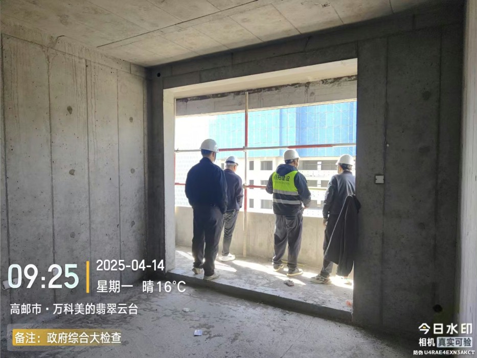 2025年4月14上午,高邮市住建局对云台嘉园安全、质量综合大检查,住建部门领导对现场施工单位安全、农民工付款、分包报验、方案进行检查,对现场的安全管理工作和资料审查工作表示肯定。会上提出要保持对项目安全动态和静态的把控,强化施工管理人员交底意识,加强安全管理,同时要保障农民工付款权益。