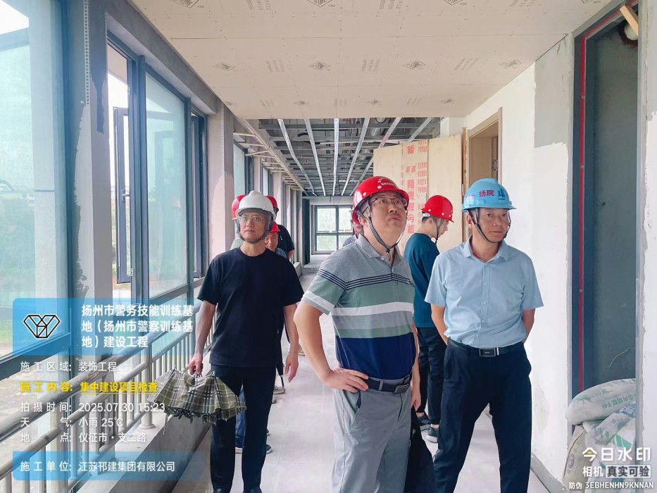 2025年7月30日下午,集中建设处领导及专家对仪征警校项目施工现场安全管理、工程质量和文明施工情况进行了全面检查,同步核查了监理资料完整性与规范性。检查结果显示:现场施工组织有序,安全措施落实到位,质量进度符合计划要求;监理资料基本齐全、记录清晰。