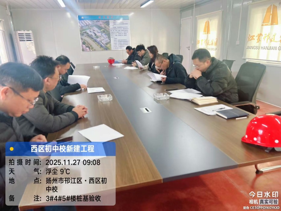 2025年11月27日西区初中校新建工程,3#、4#、5#楼桩基分部工程验收,建设单位、设计单位、勘探单位、监理单位、施工单位共同现场验收,邗江区质安站李站全程监督,桩基工程各项指标符合设计及规范要求,资料齐全完整,质量合格,一致同意通过验收。该分部工程验收合格,为后续施工奠定了坚实基础。特此汇报。