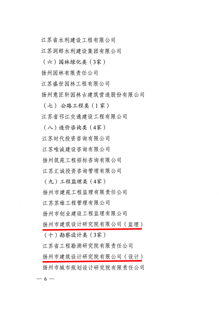 热烈祝贺扬州市建筑设计研究院有限公司荣获2023年度设计类、监理类双项“扬州市建筑业先进企业”称号!