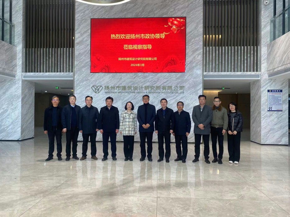 2024年3月19日上午,扬州市政协副秘书长冬冰带领九届政协社法委社保界别政协委员,开展“扬州市建筑业高质量发展”主题调研活动。本次调研活动扬州市建筑设计研究院有限公司承办,市政协委员、扬州市建筑设计研究院有限公司工程咨询管理公司总经理高训波参加本次调研活动。