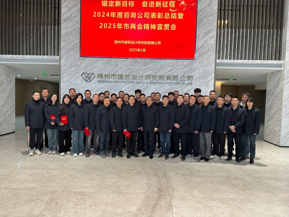 会议开始前全体参会人员在扬院科技大楼大厅进行了合影。本次会议第一项议程是各项目负责人分述项目进展情况,各职能部门及各分管领导进行2024年度工作总结,并对2025年度各项工作计划进行汇报;第二项议程是杨海国副总经理主持召开安全生产专题会议;第三项议程由高训波总经理对2024年工作进行了全面回顾总结,并对2025年重点工作进行了安排部署,最后高训波总经理宣读2025年度咨询管理公司人事任命。