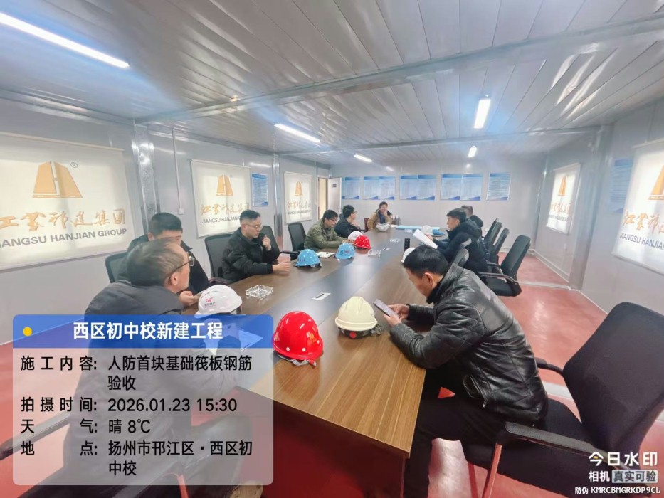 西区初中校新建工程项目人防首块筏板基础钢筋验收
