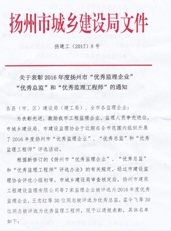 现将《2017年扬州市建设工程安全生产文明施工管理工作意见》印发给你们,请认真贯彻落实。