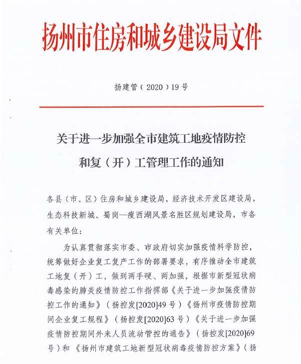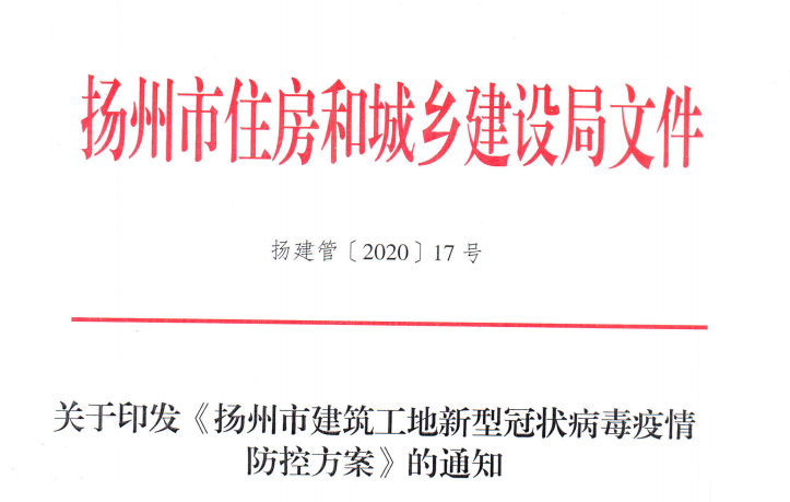 关于转发《扬州市建筑工地新型冠状病毒疫情防控方案》、《关于将疫情防控内容纳入扬州市建筑市场信用评价标准的通知》的通知
