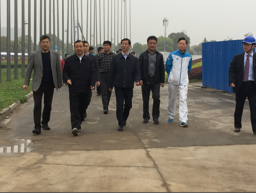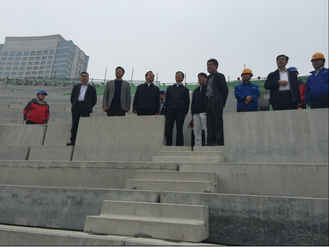 2015年4月17日,江苏省副省长曹卫星、扬州市市委书记谢正义莅临扬州市体育场项目视察。曹副省长一行详细了解了项目进展情况,并实地察看了项目现场。