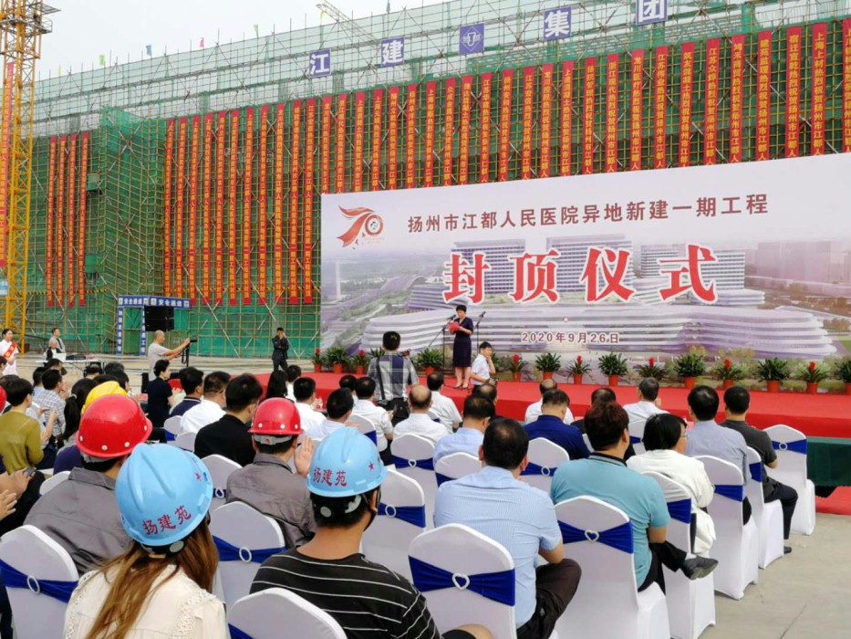 2020年9月26日扬州市江都人民医院异地新建一期工程顺利举行封顶仪式