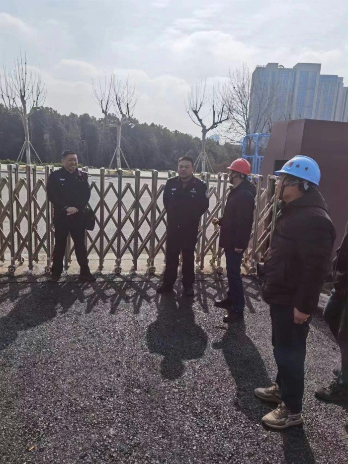 2024年2月27日扬州边防检查站蒋政委、李副站长等人赴边检指挥中心现场视察施工情况,项目管理负责人缪华组织项目监理部、施工单位对现场施工情况进行汇报。