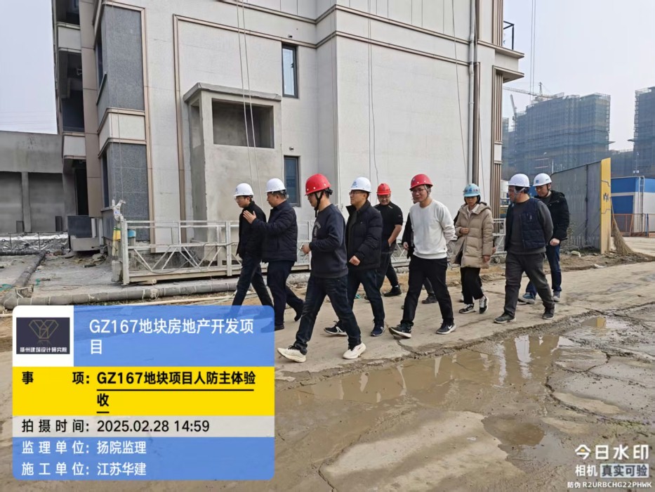 2月28日下午,扬州市人防办张继永等对GZ167地块人防地库工程进行主体验收,对现场实体、工程资料进行审查,在会议室召开验收会议,参建五方责任主体负责人、人防防护设备项目负责人均参加验收并一致同意通过验收。