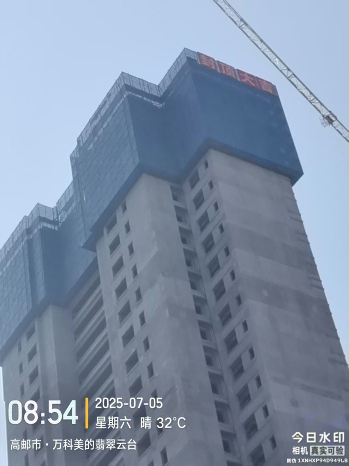 由我单位承担监理的云台嘉园三期12#楼、13#楼工程,于2025年7月11日上午11:08分顺利封顶。