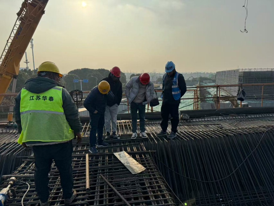2025年12月17日,扬州市建设工程管理中心赴现场监督隐蔽工程验收,并对高架桥第一联箱梁钢筋安装施工开展专业技术指导。