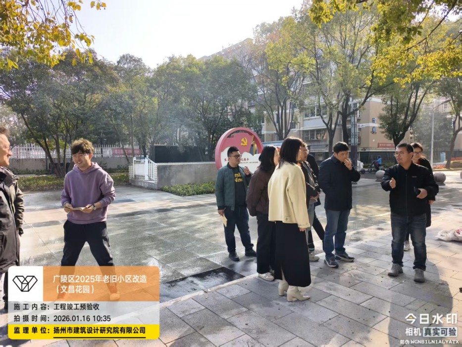 1月16日上午由我公司监理的广陵区2025年度老旧小区改造工程(文昌花园)进行了工程预验收,广陵住建局及各参建单位参加。现场查勘后,在同意预验收的前提下对项目提出一些整改意见。要求施工单位在工程竣工验收前整改到位。