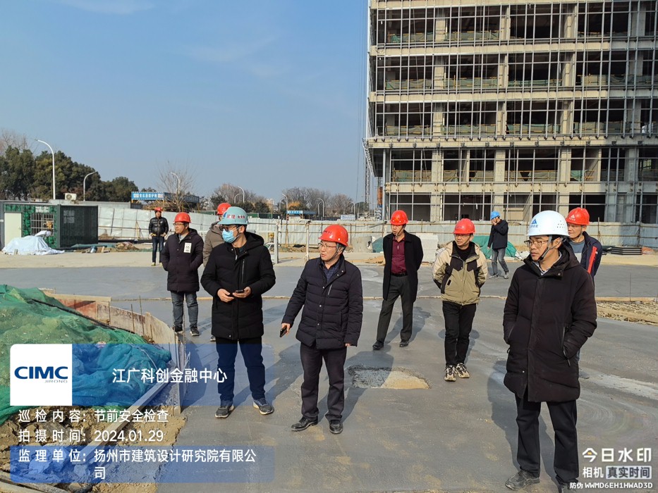 在春节来临之际,公司职能部门领导对江广科创金融中心项目进行了全面的安全检查,以确保假期期间的安全。同时,建设单位对监理团队在过去一年的工作给予了高度认可,并表达了对他们专业素养和敬业精神的由衷赞赏。
