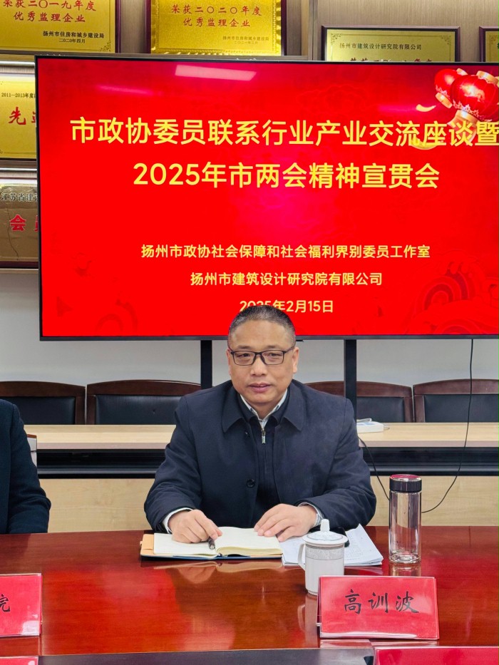 2月15日,扬州市建筑设计院邀请多家建筑咨询、监理企业在扬州市建筑设计院社会福利和社会保障界别政协委员工作室召开“市政协委员联系行业产业交流座谈暨2025年市两会精神宣贯会”。市政协委员、扬州市建筑设计院咨询管理公司总经理高训波主持会议,市规划院、建控咨询、中鑫管理、栋德管理、鑫铭管理、新能源监理、建厦监理、华中管理、万茂管理等单位参会,为本地建筑行业、咨询及监理产业搭建起协企沟通、共促发展的桥梁。